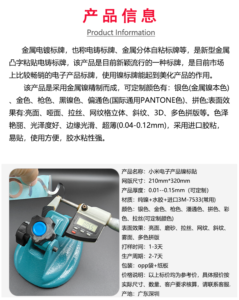 65mm 寬度:10mm 厚度:0.06mm 工藝: 電鑄 表面效果:磨砂 顏色:銀色